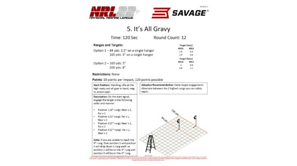 We set up several stages that had been previously used by NRL22, starting with “It’s All Gravy.” We had to engage two different targets off a ladder, following the instructions listed in the stage brief. This brief specifies the start position, target distances, and target sizes.