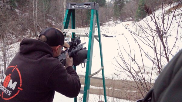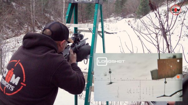 We utilized a Longshot Hawk spotting scope camera with an Athlon Ares G2 UHD 15-45 x 65 Straight Angle Spotting Scope and 22x Ranging Reticle Eyepiece to spot and record hits.