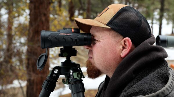 Seth and I were both impressed with Athlon’s Midas G2 UHD 12×50 Binoculars. We set these up on a tripod and were able to easily adjust the binoculars and rotate the reticle inside to range! Seth was quickly able to give me directions to get me on target.