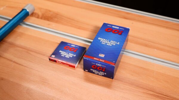 I had both the small and large primer versions of the RF100 to test. ( The small primer RF100 works with both small rifle and small pistol primers, just as the large primer RF100 works with both large rifle and pistol primers.)