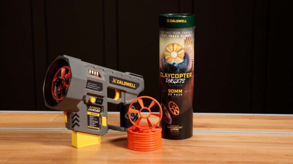 Some things don’t change very often. Clay pigeons were invented in 1875 and by 1900 trap shooting had become an Olympic sport. The clay pigeons replaced live birds and glass balls as aerial shotgun targets. Over the past 100+ years, clay pigeons have remained heavy and break easily if dropped. This year, things changed. Enter the Caldwell ClayCopter launcher and target discs!