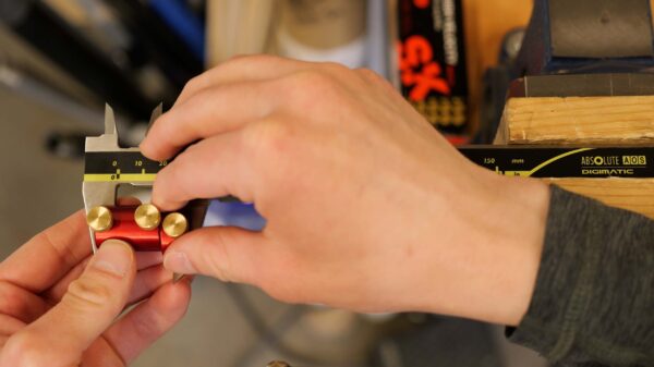 Simply screw both the body and anvil to the calipers. Hornady recommends using the anvil on the traveling blade, but Kyle prefers the opposite.