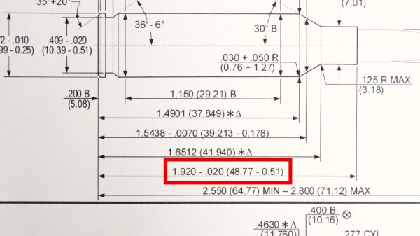 SAAMI’s case length specification for 6mm Creedmoor is 1.920” +/- 0.020”, indicating the shortest case we can have is 1.900”.