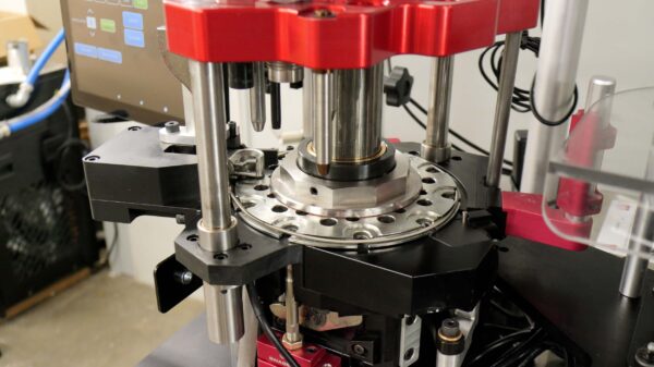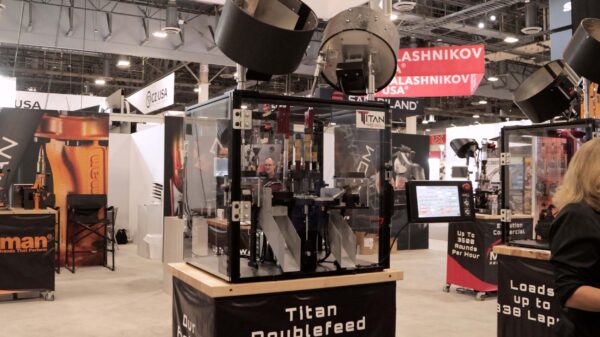 Mark 7’s Titan is purpose-built for heavy commercial reloading, up to 8,000 pieces per hour with a dual feed. This industrial 12-station machine is available in several configurations including single feed, dual feed priming, and dual feed loading with pre-primed brass. Dual feed setups allow for two casefeeders to feed into half of the toolhead (six stations). It also departs from the ecosystem of interchangeable parts and sensors that the Apex 10 and Revolution share, with a few exceptions.