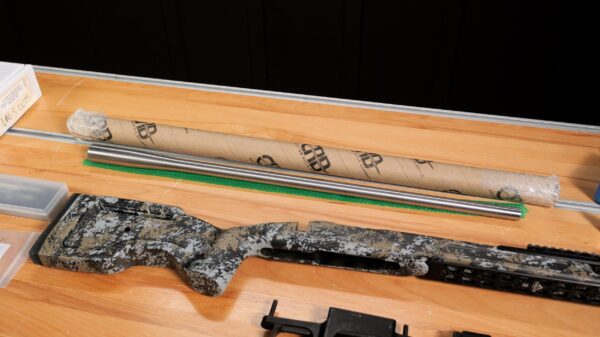 With the goal of weight savings, I have a thinner profile 7mm barrel blank from Custom Rifle Barrels than I would normally use.