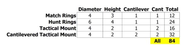 If you examine all of the combinations of rings and mounts Area 419 offers you’ll come to a whopping 84!
