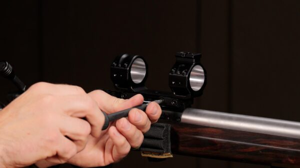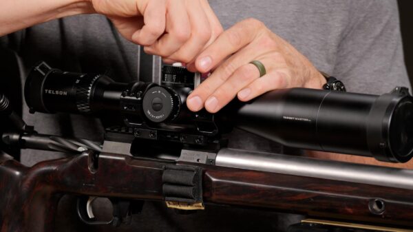 Next, I tightened the clamp screws to secure it on the rifle and torqued them to 45 inch-pounds. I removed the scope caps and placed the Telson Target Master inside the rings, taking care to max out the magnification before determining proper eye relief.