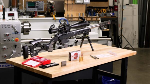 I combined this barrel with a 1934 BE1 action, WOOX Furiosa Micarta chassis, Hawkins Precision M5 DBM bottom metal, Bix’n Andy TacSport Pro-X Trigger from Bullet Central, and Telson Target Master 5-25×56 Scope.