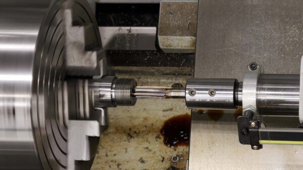 The piloted roughing drill utilizes bushings for added stability and pairs well with my standard chambering process. I generally start by removing the bulk of the material from a barrel with a conventional twist drill, but these wander as they drill. This requires extra clean-up with a single-point boring bar to get the surface running concentric. Forster’s piloted drill uses a pilot to guide the reamer, reducing deflection, runout, and chatter to a minimum. This not only makes the process more efficient, but contributes to a better finished product.