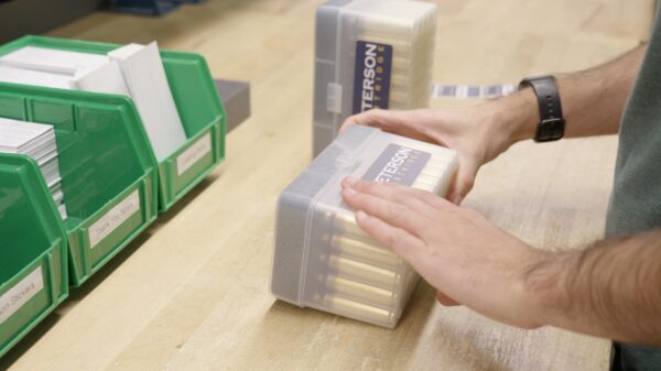 The final production step is adding anti-tarnish and Peterson’s proprietary EZ-seat coating. This special coating allows consistent, uniform seating of the bullet and primer upon first loading and is unique to Peterson Cartridge.
