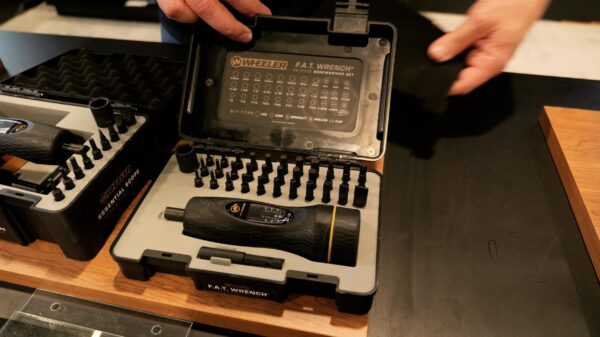 When your gunsmithing project demands precision, reach for the 38-Piece F.A.T. Wrench® Screwdriver Set. This professional-grade, essential screwdriver set pairs the iconic F.A.T. Wrench with 36 carefully selected bits and adapters, making it a must-have for tackling everything from scope bases and rings to action screws with confidence. The F.A.T. Wrench® features an adjustable torque range of 10–65 in-lbs., delivering precise and repeatable torque to scope ring and base fasteners, helping you avoid overtightening that can damage firearms or optics. The bits are black phosphate-coated to prevent corrosion and extend tool life. All the contents are neatly organized in a premium, stackable hard case that nests with other Wheeler sets. Get a Wheeler F.A.T. Wrench and have peace of mind that your rifle’s screws are tight and right.