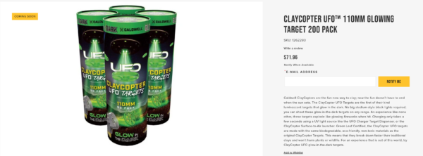 Caldwell ClayCopters are the fun new way to clay; now the fun doesn’t have to end when the sun sets. The ClayCopter UFO Targets are the first of their kind luminescent targets that glow in the dark. No big stadium-style black lights required; you can shoot these glow-in-the-dark targets on any range. An experience like none other, these targets explode like glowing fireworks when hit. Charging only takes a few seconds using a UV light source like the UFO Charger Target Dispenser, or the ClayCopter Surface-to-Air launcher. Green Leaf Certified, the ClayCopter UFO targets are made with the same biodegradable, eco-friendly, non-toxic materials as the original ClayCopter Targets. This means that they break down faster than traditional clays and won’t harm plants or wildlife. For an experience that is out of this world, try ClayCopter UFO glow-in-the-dark targets.