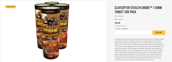 The Caldwell ClayCopter targets are all about having a great time shooting shotguns with family and friends. Providing shooters with a unique experience that is truly different than traditional clay targets. These ClayCopter Stealth Drone targets are another way to add to that fun. Designed to simulate the spinning propeller blades of an aerial drone, these targets also serve several practical purposes. The black color works well for higher-contrast targets on extremely bright days, where traditional orange can be harder to see. Alternatively, they can be used in overcast or shaded areas to create more challenging targets that are harder to track. Made using the same biodegradable, eco-friendly, non-toxic materials as the original ClayCopter Targets. This means that they break down faster than traditional clays and won’t harm plants or wildlife. Add these ClayCopter Stealth Drone targets to your next range trip and see why ClayCopter targets are the new way to clay.