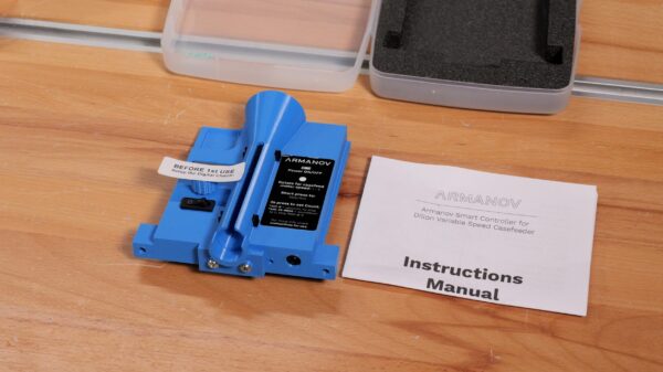 This smart controller does not require any modifications to the original Dillon casefeeder and allows use of the original power adapter. The controller also ships with two different casefeed tube mounts.