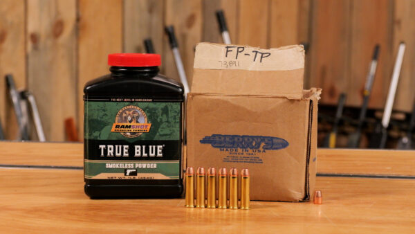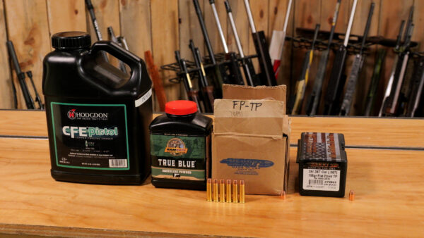 I decided to use two different powders: CFE Pistol and Ramshot True Blue, pulling data from Hodgdon’s Online Reloading Data Center.