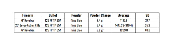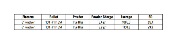I stuck with True Blue for the 158-grain bullets, loading the same charge weights I had with the 125’s—8.4 grains and 9.2 grains.