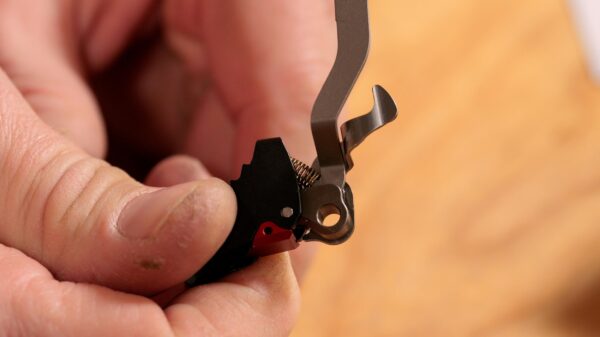 The ACE trigger system has a plunger and two spring set options—light and heavy—for even greater customization. The heavy spring comes installed, but I wanted a lighter trigger pull, so I swapped the extractor plunger spring and the take-up spring.