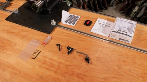 The primary trigger components come with a disconnect, installation tool, replacement springs, Allen key, printed materials, Velcro patch, and a TriggerTech card game! (This card game comes with the chance to win a free trigger!)