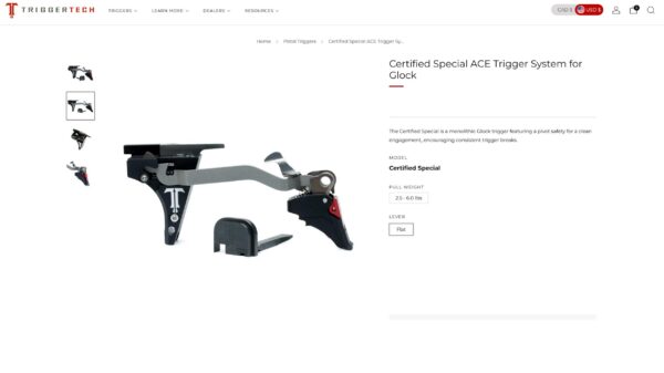 TriggerTech offers two ACE models, the Certified Special and the Legacy (coming soon!). Both options run about $250 and feature a fully-configurable 2.5 – 6.0 lbs. trigger pull weight. The Certified Special is USPSA-approved for use in competition with a pad-type safety whereas the Legacy has a lever-type safety and is currently in the process of receiving IPSC approval.